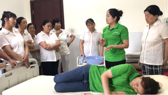 隨后的一堂實操護理課程,由總部的三位講師同臺講解,強化訓練了日常護理照料、全背按摩、協(xié)助翻身側(cè)臥、床上梳頭等日常項目。結(jié)合理論與實操,分步驟傳授護理細節(jié)及經(jīng)驗。張穎老師和項曉燕老師組織大家進行換位互動,讓大家不僅作為“施行者”來進行工作,更要作為“體驗者”接受被服務的感覺。多年的服務經(jīng)驗,我們深以為然,做好護理就是熟能生巧,比高水平服務更 的,則是以人為本,這種 服務需要我們自己反復的去感同身受,換位思考。